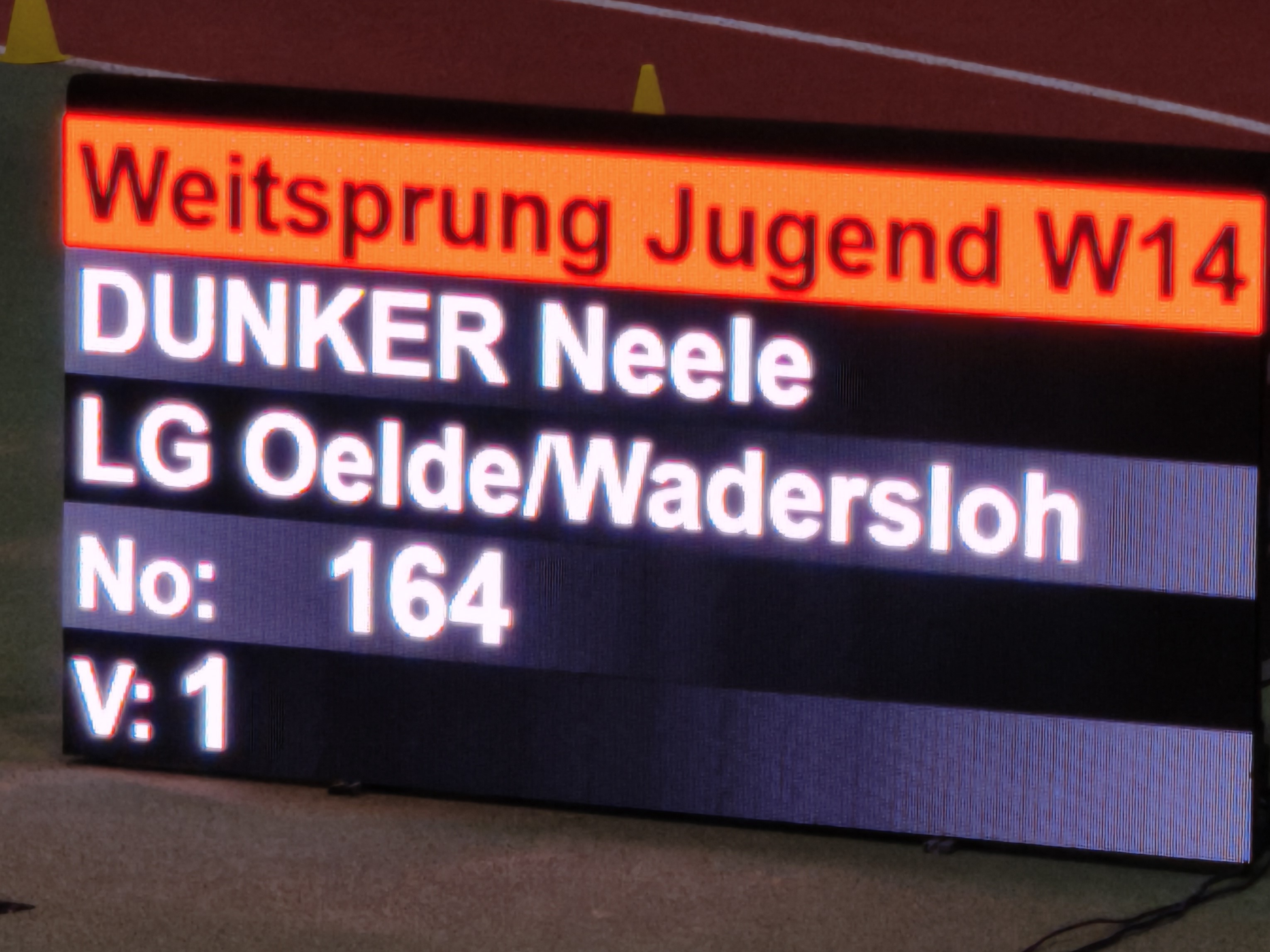 Als eine der zwölf besten Weitspringerinnen Westfalens startete Neele Dunker am 31. Januar bei den FLVW Hallenmeisterschaften II und III in der Dortmunder Helmut-Körnig-Halle. Mit ihrer Meldeleistung von 4,81 m, die sie im vergangenen Sommer bei den Kreismeisterschaften in Enniger erzielt hatte, lag sie auf dem sechsten Rang. Entscheidend für die Teilnahme am Endkampf der besten Acht war die Tagesform, die an diesem Tag nicht die angestrebte Weite brachte. Die Leistungen der Athletinnen lagen sehr eng zusammen und so reichte es am Ende mit 4,55 m leider nicht für den Einzug ins Finale. Mit ihrer Saisonbestleistung belegte sie den zehnten Platz der W14-Konkurrenz. Trotzdem konnte Neele die schöne Atmosphäre in der Helmut-Körnig-Halle genießen.