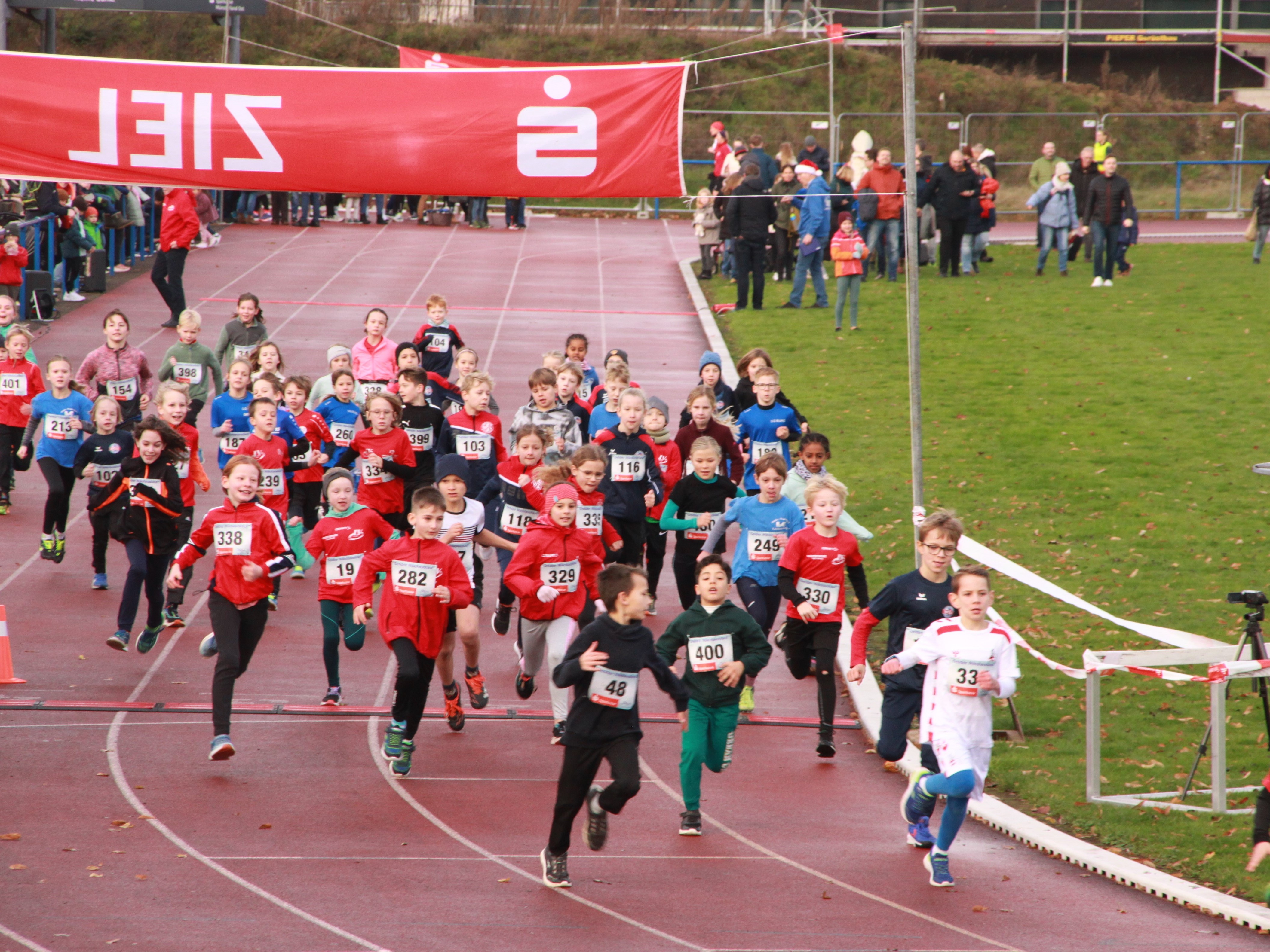 Zu Beginn startete im Rahmenprogramm ein einziges Staffel-Team über 3 x 1 Runde der Kinder U8. Mit dem erst fünfjährige Ben Krumpholz als Startläufer, Emily Bulgaev und Michel Bergmann benötigte die LG Oelde/Wadersloh 6:05,35 Minuten bis der Staffelstab final über die Zielline gebracht wurde.