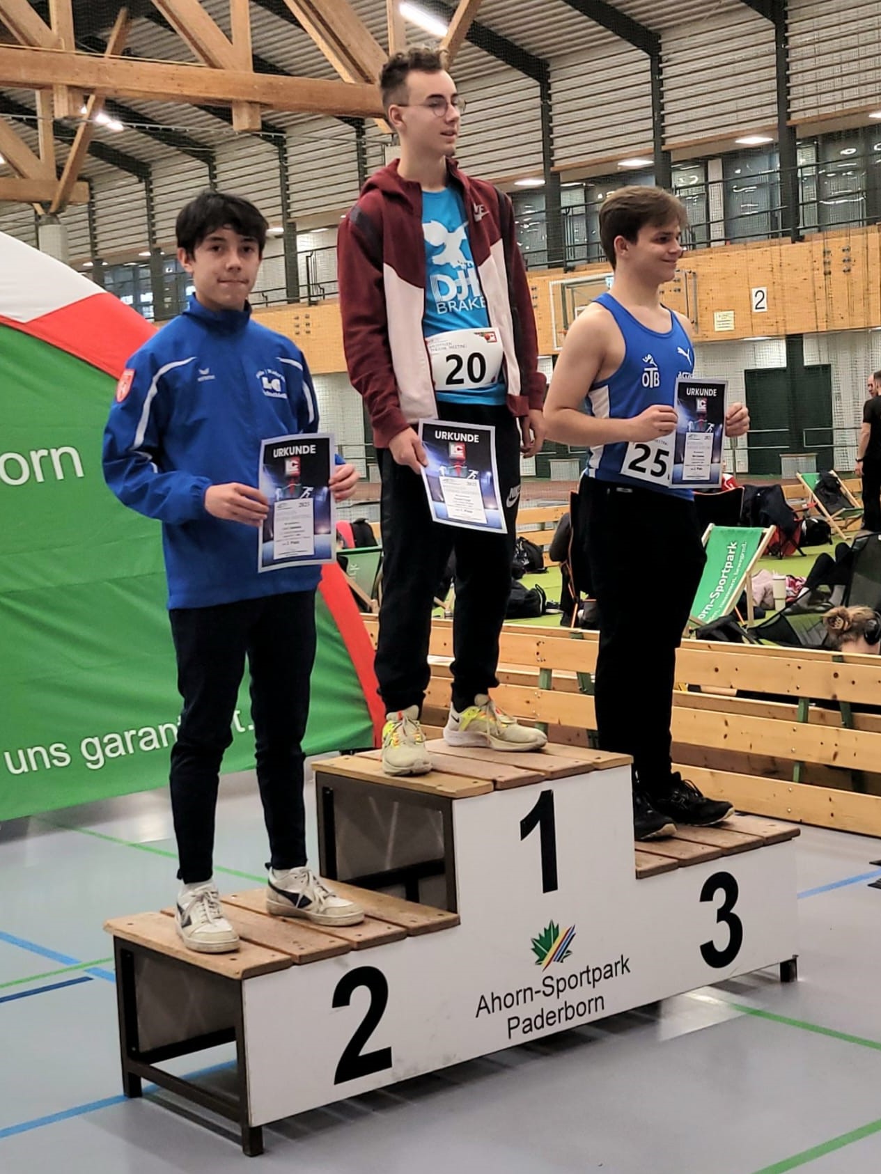 Am 07. Dezember fand im Ahorn-Sportpark Paderborn das Westfalen-Therme Meeting statt, ein Hallensportfest, das vom LC Paderborn organisiert wurde und Athleten von U14 bis Männer/Frauen in verschiedenen Disziplinen zusammenbrachte. Das umfangreiche Wettkampfprogramm umfasste 60 m, 200 m, 800 m, 1500 m, 3000m, Sprung, Stoß und Staffelläufe. Neben Athleten aus der Region waren auch Sportlerinnen und Sportler aus Hessen und Niedersachsen in mehr als vierhundert Wettbewerben am Start. Collin Sabellek von der LG Oelde/Wadersloh, der gemeinsam mit seiner Trainerin Maria Gerke angereist war, nahm mit Meldungen im Sprint, Kugelstoß und Weitsprung zum ersten Mal an diesem Hallen-Meeting teil.