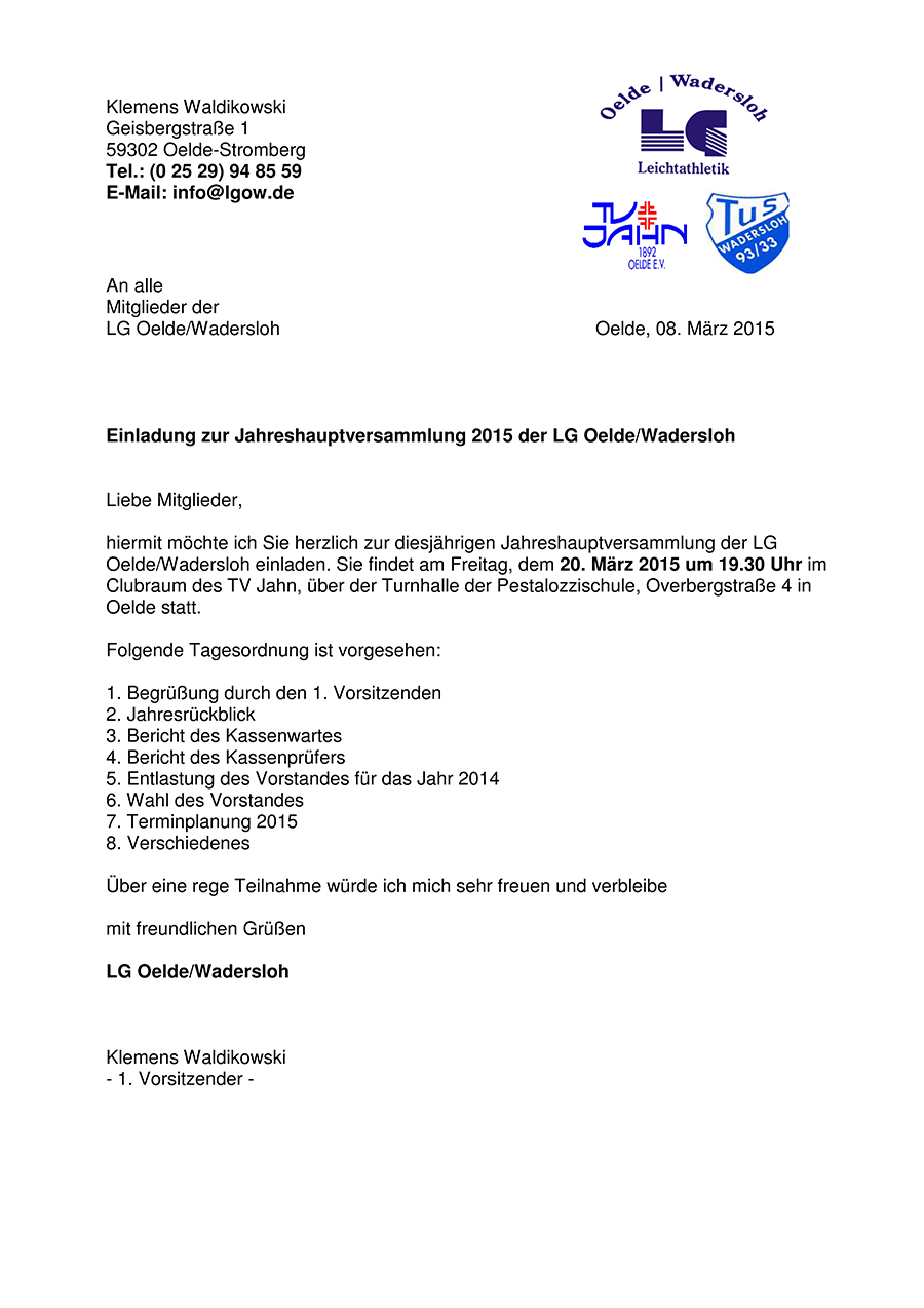 Einladung zur Jahreshauptversammlung