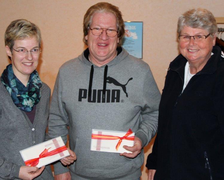 Ein „Dankeschön“ überreichte Elke Horsthemke als Geschäftsführerin Hubert Figgener und Doris Waldikowski, die dem Vorstand der LG Oelde/Wadersloh bereits seit der Gründung angehören und somit 20 Jahre in ihren Ämtern sind.