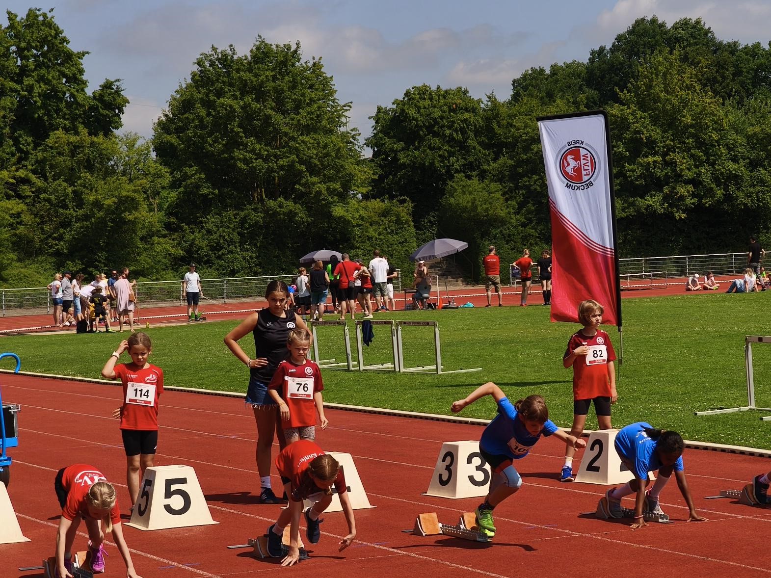 Mit fünfzehn Leichtathletinnen und -athleten war die LG am 28. Juni bei den Kreismeisterschaften des Sportkreises Beckum im Ahlener Sportpark Nord vertreten. Sprint, Mittelstrecke, Ballwurf, Kugelstoß, Weit- und Hochsprung standen auf dem umfangreichen Wettkampfprogramm. Kinder und Erwachsene waren bei bester Stimmung mit Freude und Eifer am Start.