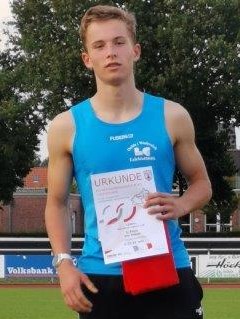 Seinen ersten 3000-Meter-Wettkampf bestritt Ben Althoff. In einem taktisch klugen Rennen konnte er in der letzten Runde die Führung übernehmen und ausbauen, so dass er am Ende deutlich unter der 10-Minuten-Marke blieb. Mit 9:46,25 Minuten sicherte er sich den Sieg und somit den Meistertitel der männlichen Jugend U18. Auch am Sonntag ging Ben konzentriert an seine 1500-Meter-Premiere heran. In einem großen Gesamtstarterfeld der Jugend- und Männerklassen heftete er sich an die Fersen seines U18-Konkurrenten. Mit einem starken Endspurt zog er auf den letzten Metern an ihm vorbei und erreichte mit 14 Hundertsteln Vorsprung als erster die Ziellinie. So konnte er sich am zweiten Wettkampftag über eine Bestzeit von 4:25,14 Minuten und einen weiteren Münsterlandmeistertitel freuen.