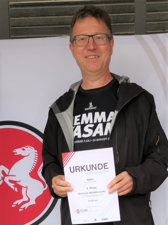 Klemens nutzte die sich bietende Gelegenheit ebenfalls zu einer Wettkampfteilnahme. Er startete beim 400 Meter Lauf der Männer und beendete ihn nach 78,08 sec erfolgreich.