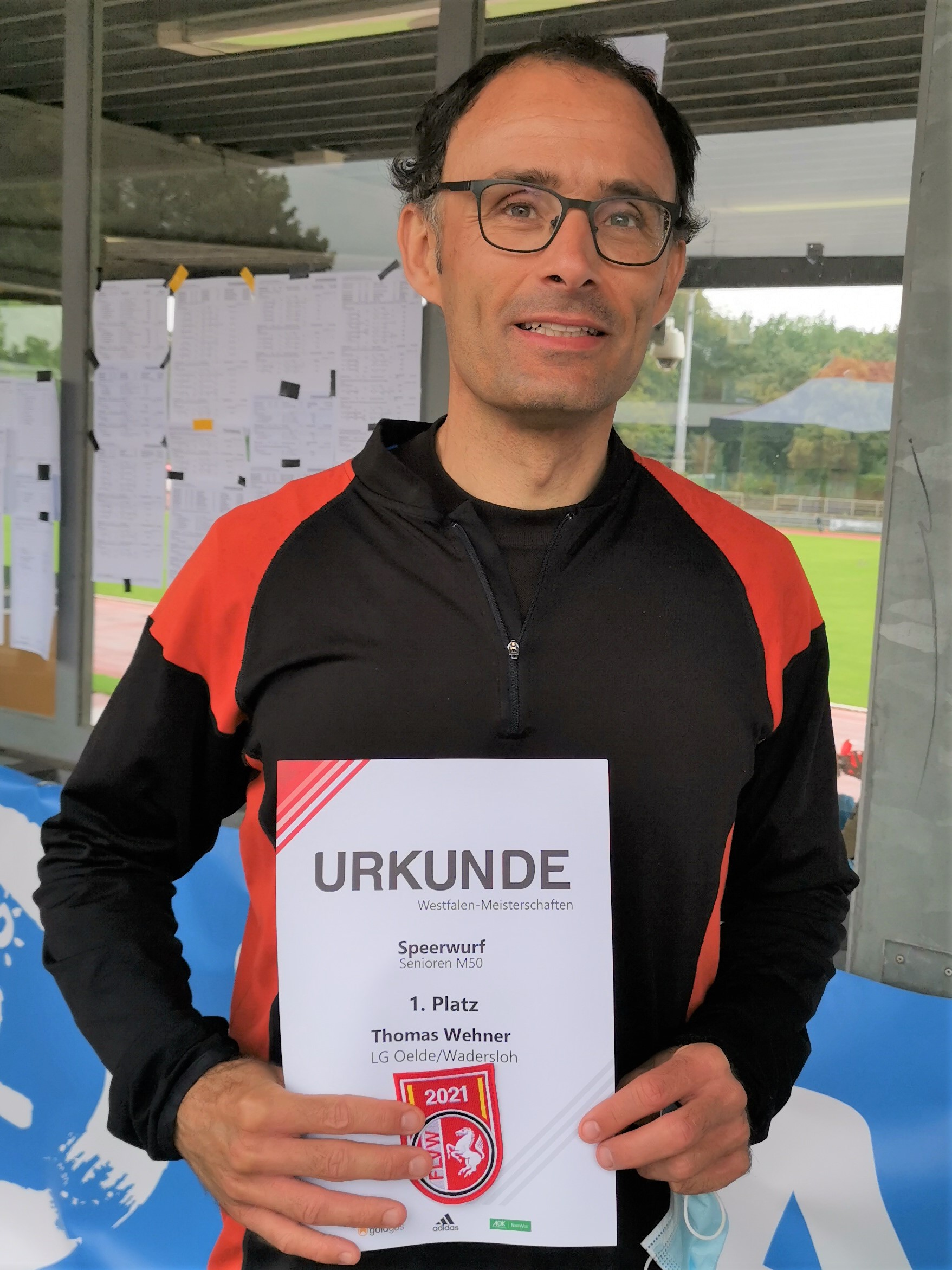 Seinen zweiten Titel erzielte er im Speerwurf, den er mit einer Weite von 38,68 Metern beendete. Nach seinen 40,66 Metern bei den Münsterlandmeisterschaften, die er mit dem 800-Gramm-Speer der Männerklasse erreichte, hatte er mit dem 700 Gramm schweren Wurfgerät der Seniorenklasse eine Weite von deutlich über 40 Metern angepeilt. „Der leichtere Speer hat etwas andere Flugeigenschaften, an die ich mich erst einmal gewöhnen muss“, sieht Thomas daher für kommende Wettkämpfe noch deutliches Verbesserungspotenzial.