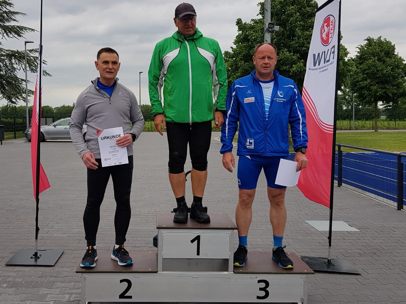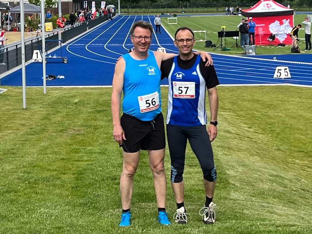 Klemens Waldikowski beendete seinen ersten Wettkampf in der Saison 2022 erfolgreich. In einem gemischten Wettbewerb der Altersklassen M30 bis M55 startete er auf der neuen blauen Tartanbahn über eine Stadionrunde. Nach einem guten Start und Rückenwind ging er die ersten zweihundert Meter gut an. Starker Gegenwind bremste die Teilnehmer auf der Gegengeraden aus. Während die anderen Läufer nicht an ihre Meldeleistungen herankamen, verbesserte Klemens seine Leistung um mehr als eine halbe Sekunde. So freute er sich im Ziel des 400-Meter-Laufs über eine neue persönliche Bestzeit von 74,42 Sekunden und den Westfalenmeistertitel der Altersklasse M55.
