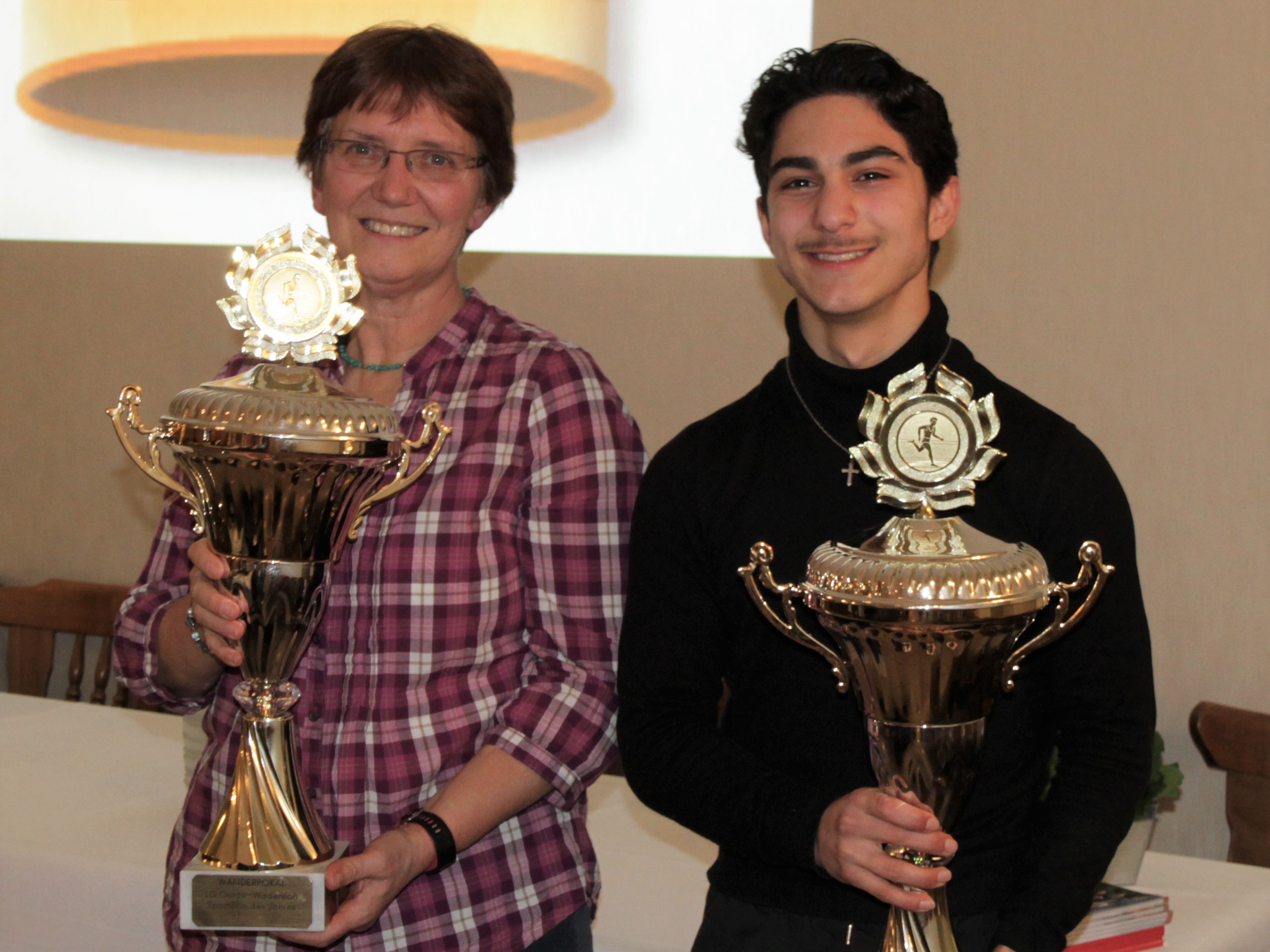 In diesem Jahr hatte der amtierende Vorstand bereits im Vorfeld die Wahl der Sportlerin und des Sportlers des Jahres übernommen, wobei der Zeitraum von 2020 bis 2022 in den Blick genommen wurde. Schnell war man sich einig, die LG-Krone Carola Oen und Lukas Botrus zu überreichen. Carola hatte in 2022 nach längerer Pause wieder aktiv an Leichtathletikwettkämpfen teilgenommen und in Maria Veen den Westfalenmeistertitel im Speerwurf erzielt. Lukas war 2021 als Westfalenmeister im Crosslauf erfolgreich. Zudem erzielte er mit seinem sechsten Platz bei der Deutschen Crosslauf-Meisterschaft in Sonsbeck einen der begehrten Urkundenränge. 2022 feierte er Erfolge als Münsterlandmeister über die 1500-Meter- und 3000-Meter-Distanz.