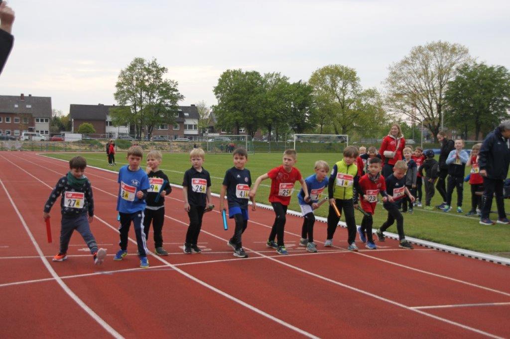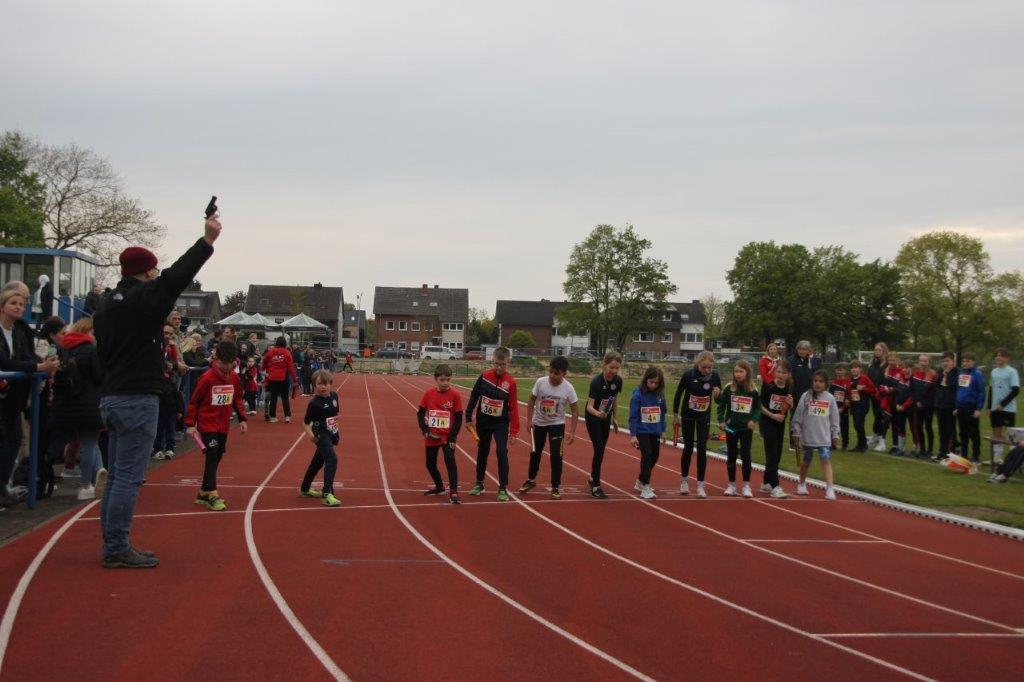 Zu Beginn waren die Kinder U10 in einem Rahmenwettbewerb eingeladen, eine 3 x 1 Runde Staffel auf der Tartanbahn zu absolvieren. Jeweils zehn Mädchen- und Jungenstaffeln waren am Start. Bei den Mädchen gewann die Warendorfer Sportunion in 4:23,5 Minuten vor der Staffel der LG Oelde/Wadersloh 3 und der des LV Oelde 2. Auch in der Jungenwertung hatte die Warendorfer Sportunion die Nase vorn. Mit 4:40,0 Minuten platzierte sie sich vor dem Team des LV Oelde 2 und der zweiten Jungen-Staffel der Warendorfer Sportunion.