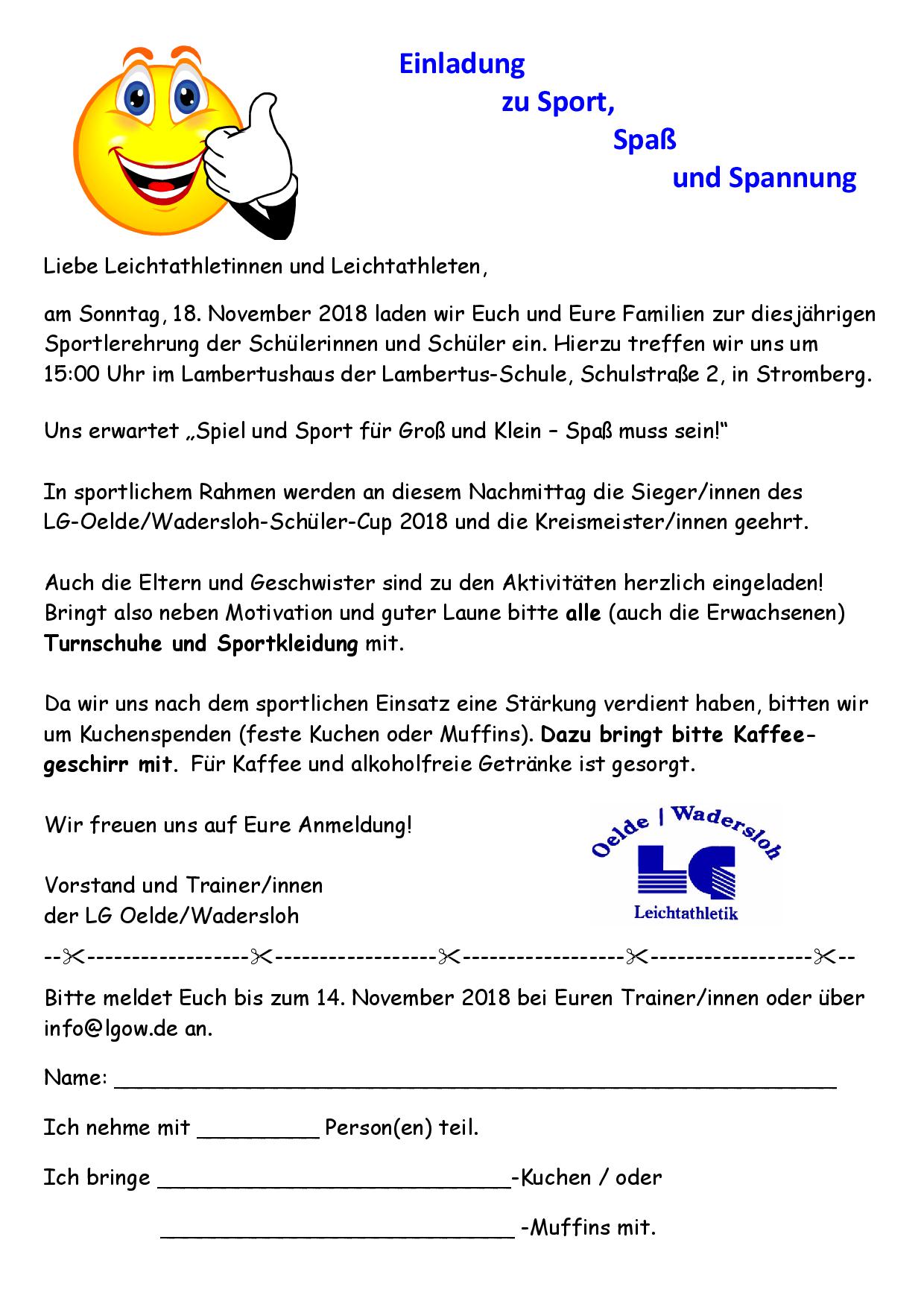 Am 18. November 2018 hatten Vorstand und Übungsleiterinnen der LG Oelde/Wadersloh ins Stromberger Lambertushaus eingeladen, um die jungen Sportlerinnen und Sportler aus ihren Reihen für die Erfolge der vergangenen Saison zu ehren. Zahlreiche Schülerinnen und Schüler verbrachten gemeinsam mit ihren Familien einen sportlichen und abwechslungsreichen Nachmittag. Nach einem flotten Aufwärmprogramm, das die Übungsleiterinnen Michelle Brügma und Elke Horsthemke für die Gruppe vorbereitet hatten, wurden unter den anwesenden Kindern und Eltern zwei Mannschaften gewählt, die in sportlichem Wettstreit gegeneinander antraten. Beide Mannschaften erwiesen sich als gleichstark und erzielten exakt dieselbe Punktzahl. So konnten sich alle Beteiligten über ihre Präsente freuen.