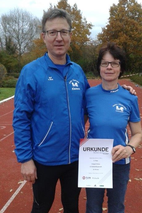Irmgard startete auf der Mittelstrecke der Frauen und Seniorinnen und sicherte sich trotz Trainingsrückstands einen Podestplatz. Sie benötigte für die 5190 m Distanz zwischen Stadion und Lippeaue 32:18 Minuten und freute sich über ihren dritten Platz in der Altersklasse W55.