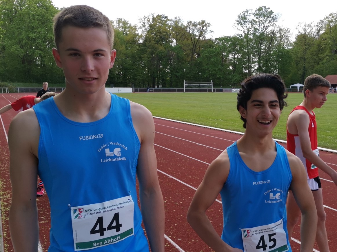 Mit Ben Althoff und Lukas Botrus vertraten zwei Athleten der LG Oelde/Wadersloh den Sportkreis Beckum bei den NRW-Langstreckenmeisterschaften in Rheine. Bei guten Wettkampfbedingungen starteten Beide beim 3000-Meter-Lauf der männlichen Jugend U18.