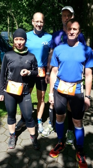 Muttertagstag ein erfahrenes Trio ins Rennen. Glücklicherweise trockenes aber sehr windiges Wetter und aufgeweichter Untergrund bescherte den Teilnehmerinnen und Teilnehmern durchaus anstrengende Bedingungen. Ralf und Maria Gerke absolvierten gemeinsam die Zehn-Kilometer-Distanz und kamen nach 50:46 Minuten ins Ziel. Ralf Ruppert hatte sich für den Marathon als ruhige Trainingseinheit entschieden und beendete das Rennen in 4:00:28 Stunden. Dies brachte ihm den zweiten Platz seiner Altersklasse ein.